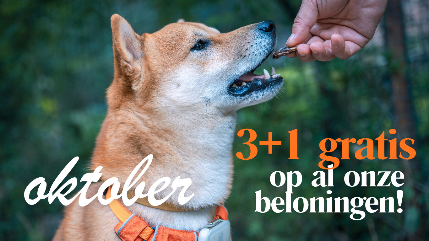 Verwen je hond én je portemonnee! Deze maand geldt: 3+1 gratis op alle beloningssnacks. Vul je mandje met 4 zakjes snacks naar keuze en je krijgt er eentje gratis bij. Mix & match zoveel je wilt – alle merken doen mee.